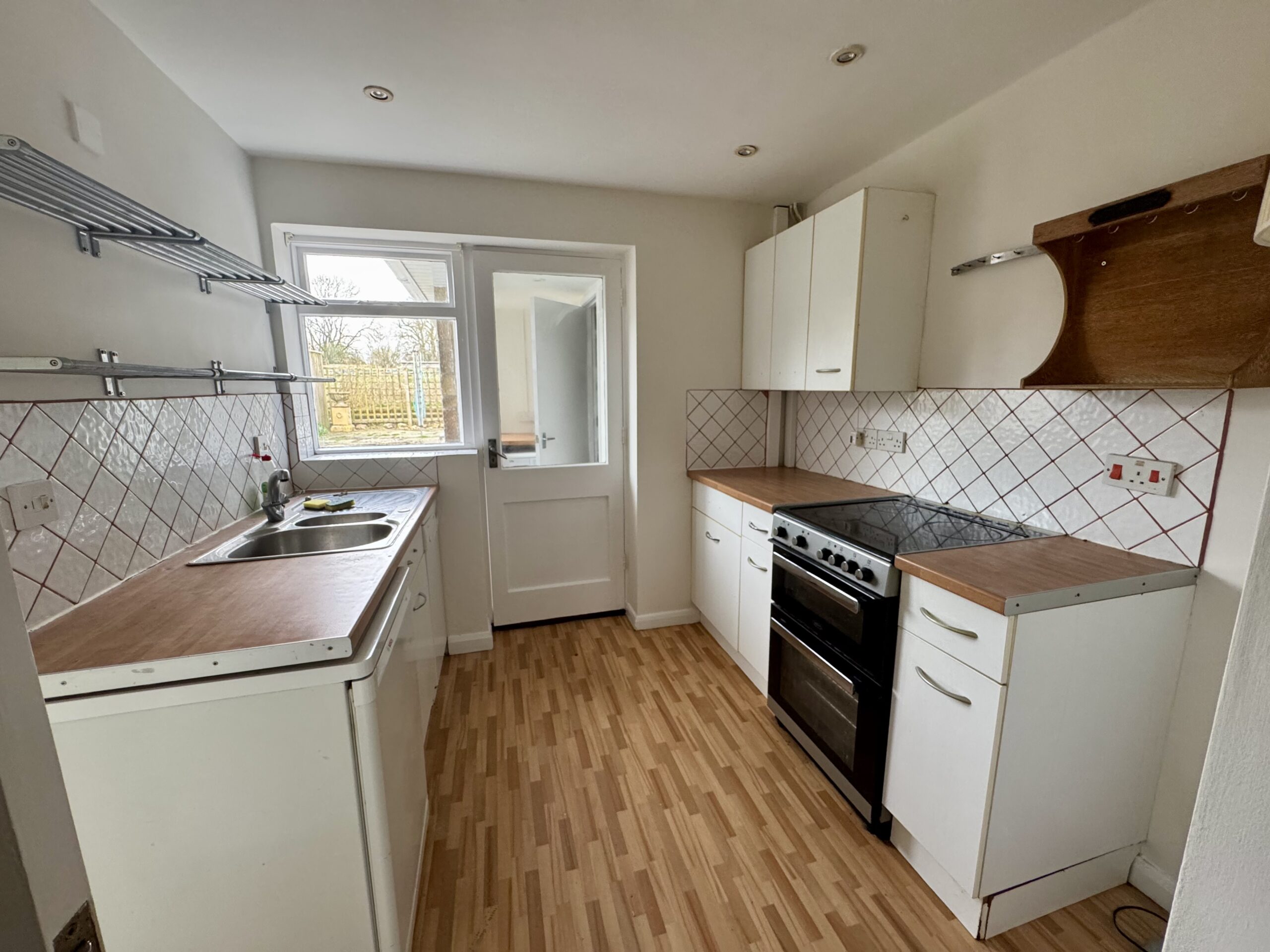 The accommodation comprises a welcoming entrance hall leading to a galley-style kitchen with ample storage, providing practical and efficient workspace. To the rear, a useful downstairs utility area and separate W/C / shower room add to the home’s functionality. The generous main living/dining room is a standout feature, offering a bright bay window to one end and doors opening onto the courtyard at the other, creating a wonderful dual-aspect space ideal for both relaxing and entertaining.