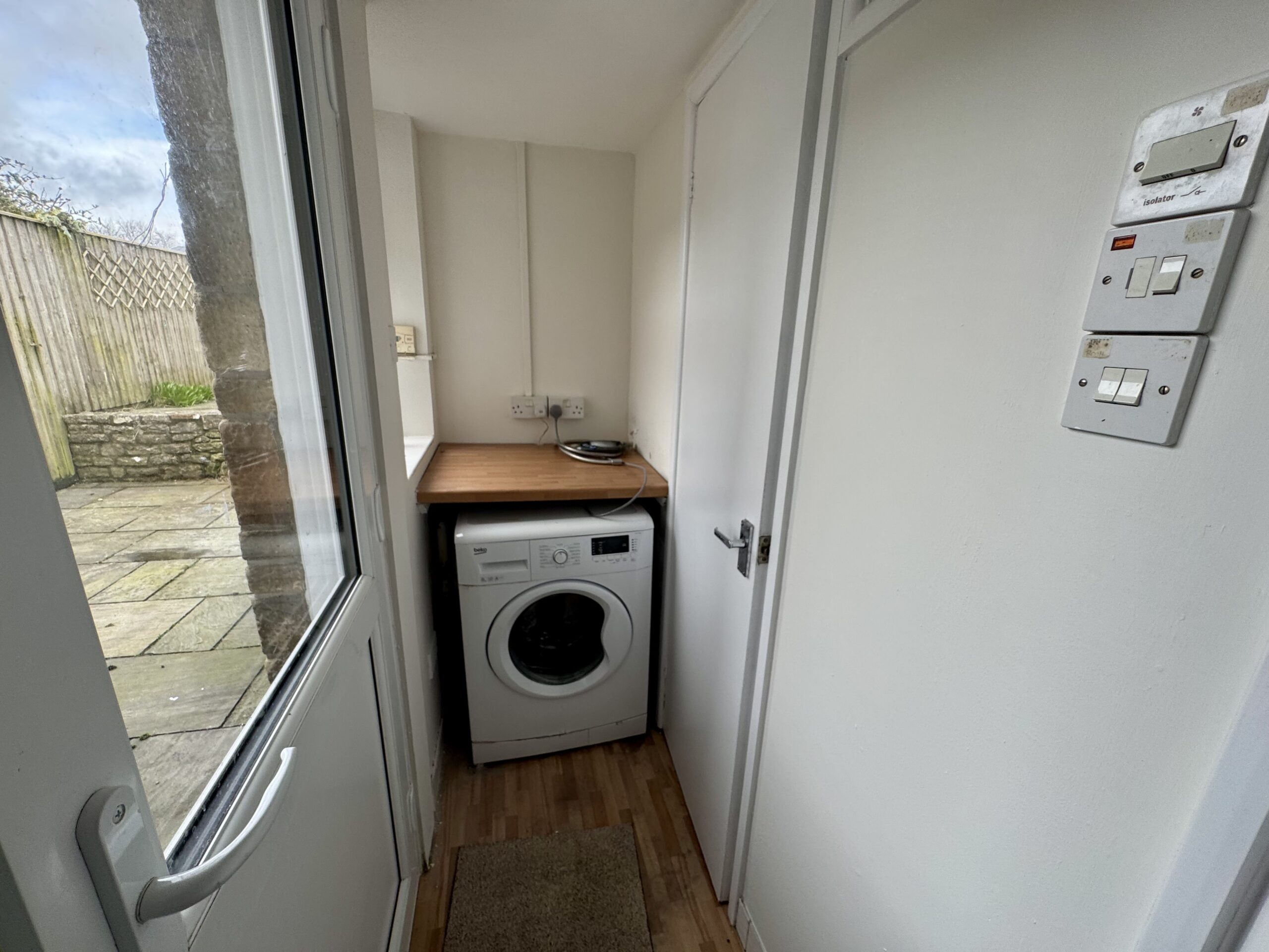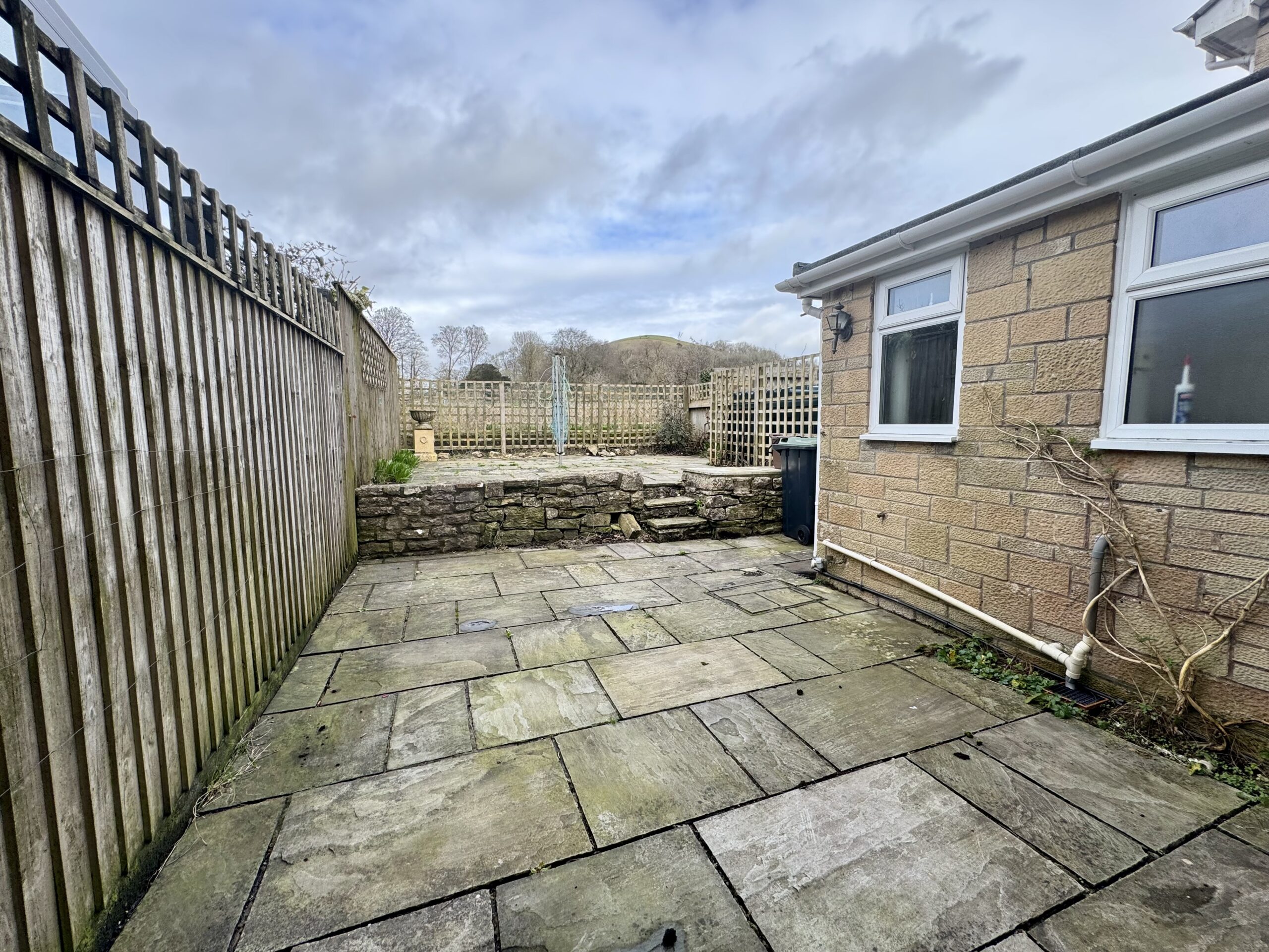 Externally, the property enjoys a fully enclosed rear garden arranged over two levels, both laid to patio for ease of maintenance. The elevated position provides lovely views over the surrounding fields, offering a peaceful countryside outlook.
