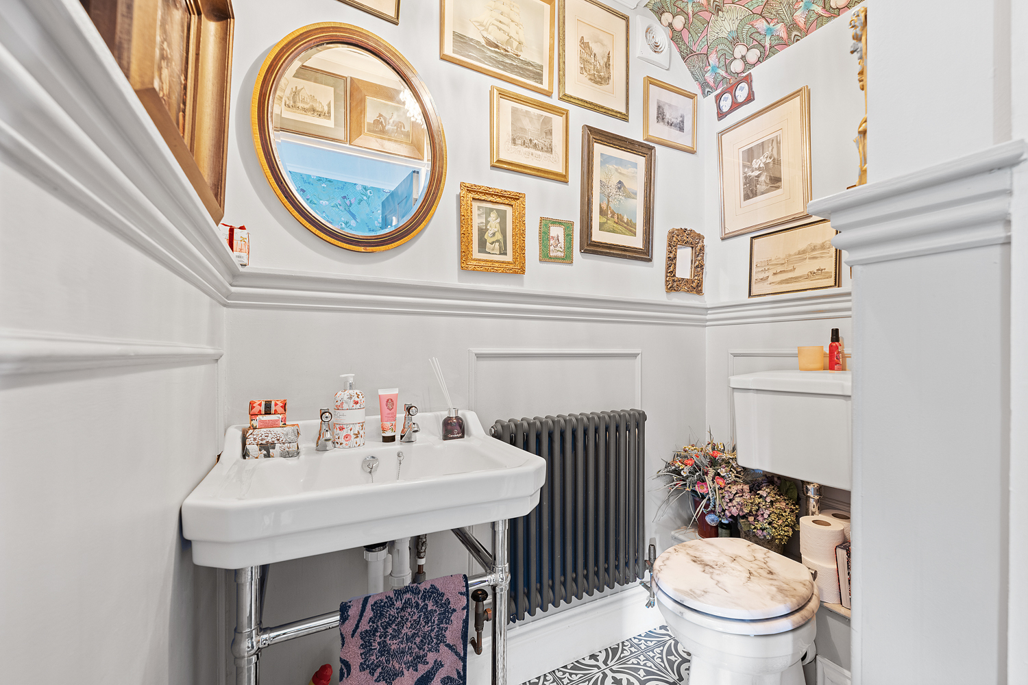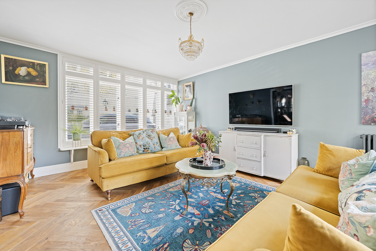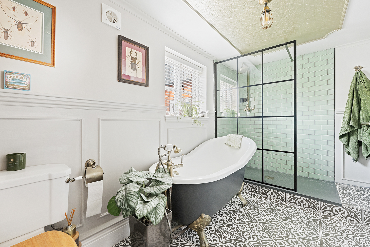 On the first floor, a cleverly concealed living room hidden behind a stylish bookshelf offers a unique and private retreat, complete with a balcony overlooking the garden. This floor also hosts a single bedroom with its own en-suite-ideal for guests-as well as the impressive principal suite, featuring a luxurious en-suite bathroom with freestanding bath, separate walk-in shower, and a spacious walk-in wardrobe.
