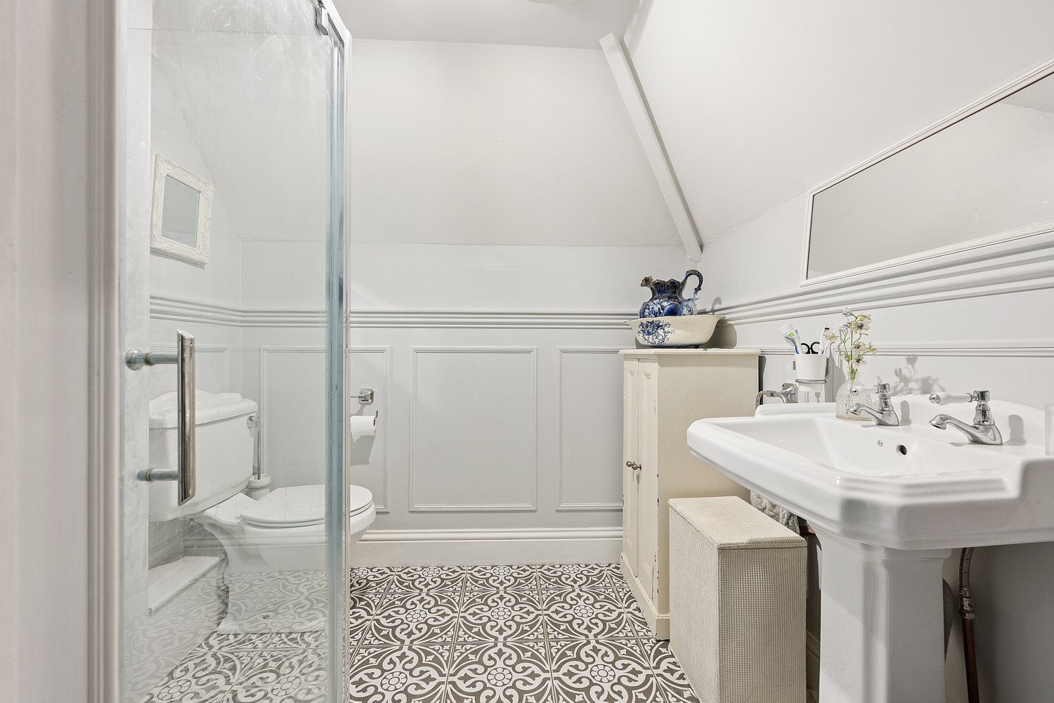 The second floor provides two further generously sized double bedrooms, served by a contemporary family bathroom with walk-in shower.
